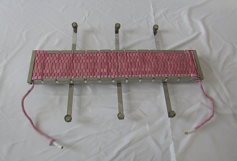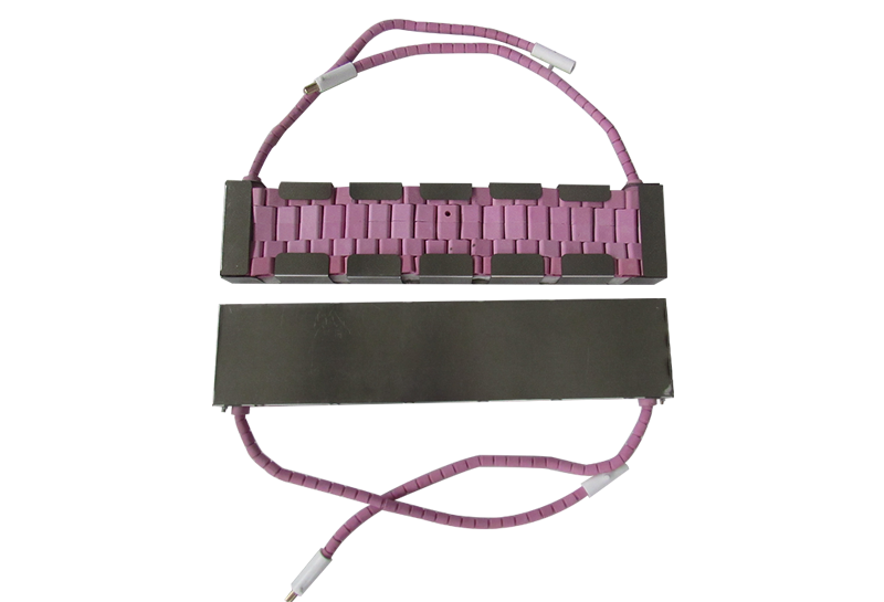 在帶工裝的履帶式陶瓷加熱器兩側(cè)安裝幾塊磁鋼,能吸附在工件上,適用于球罐、船體等金屬構(gòu)件的焊前預(yù)熱,使用靈活。