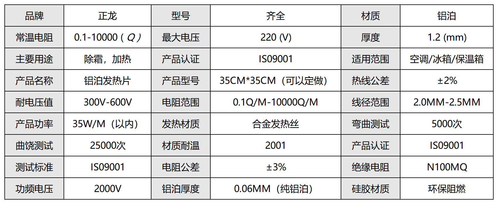 6. 鋁箔與加熱線粘接剝離強度: ≥ 2N/1min 無剝離與脫落。